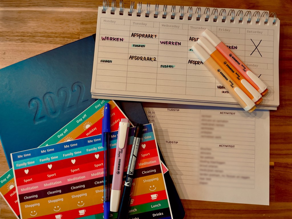 In de tijd dat ik nog studeerde had ik een heel plan uitgewerkt in Word. Meerdere schema’s op basis van de tijd van de eerste les op school. Het eerste schema was gebaseerd op de eerste les die om 08.30. Het tweede schema om 09.00. Het derde om 09.30, ga zo maar door. Diep van binnen vond ik het wel echt heel erg dat ik zo ben, alles zo volgens schema’s. Beetje autistisch maar. Maar ja, als chronisch zieke moet je nou eenmaal weten hoe je je dagen moet inplannen en zeker daarbij kijken naar je energieniveau en je belastbaarheid. Daarbij had ik ook een avondroutine gemaakt, met een to do schema en de duur van een activiteit.