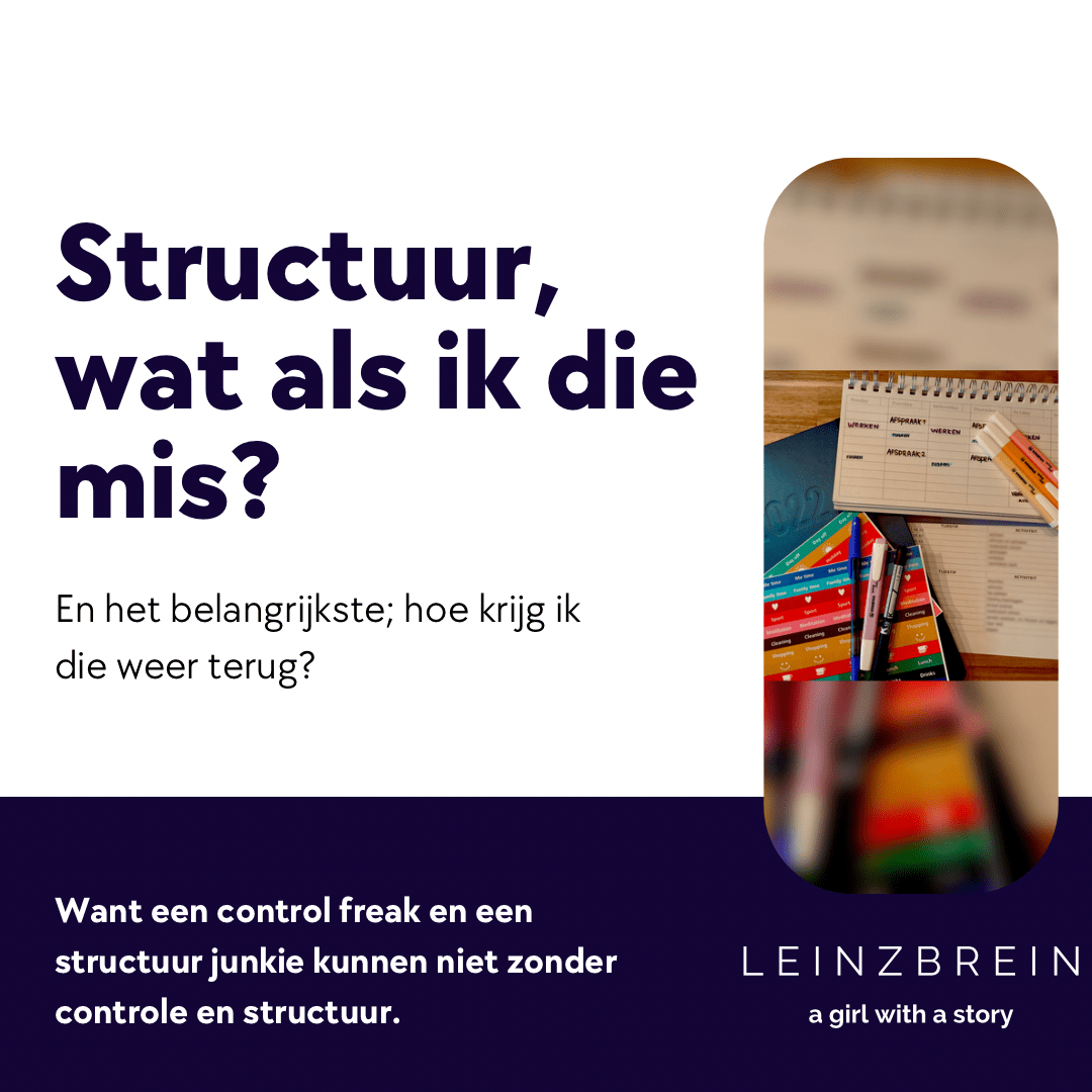 Als control freak en structuur junkie, is het hebben van controle met daarbij structuur het belangrijkste.